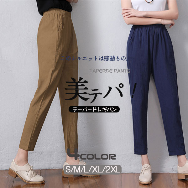 ポイント超超祭 クーポン テーパードパンツ リネン レディース きれいめ 大きいサイズ 体型カバー 綿麻 ボトムス ウエストゴム ストレッチ 着やせ 美脚 シンプル おしゃれ