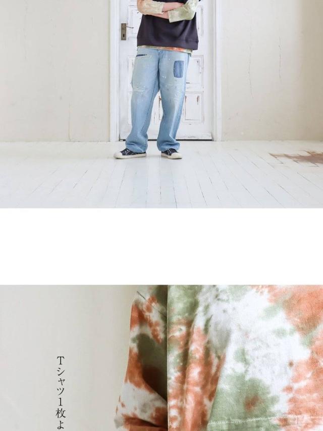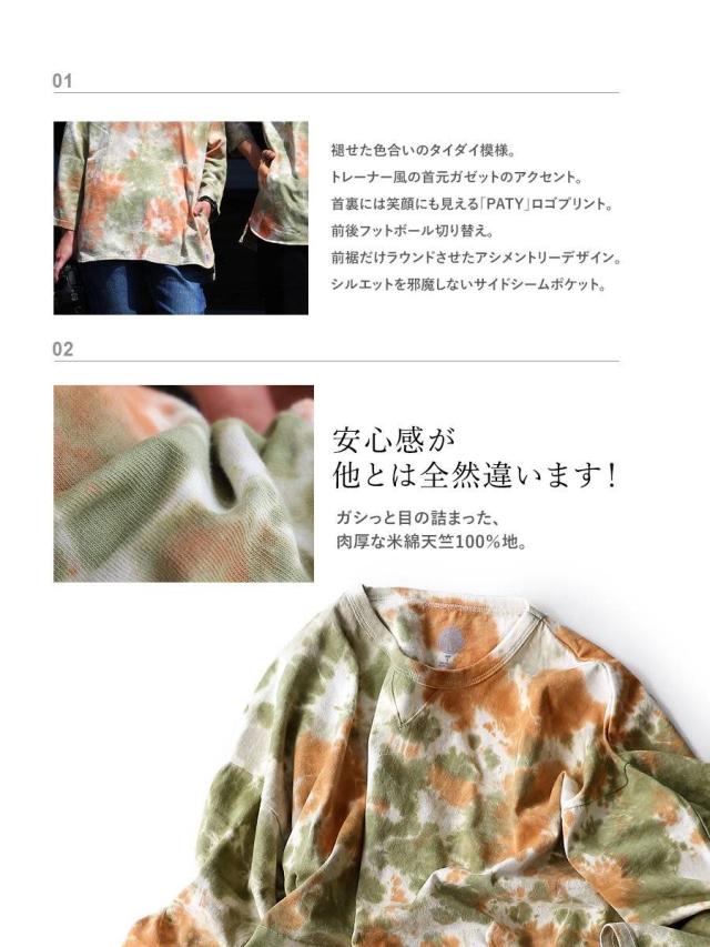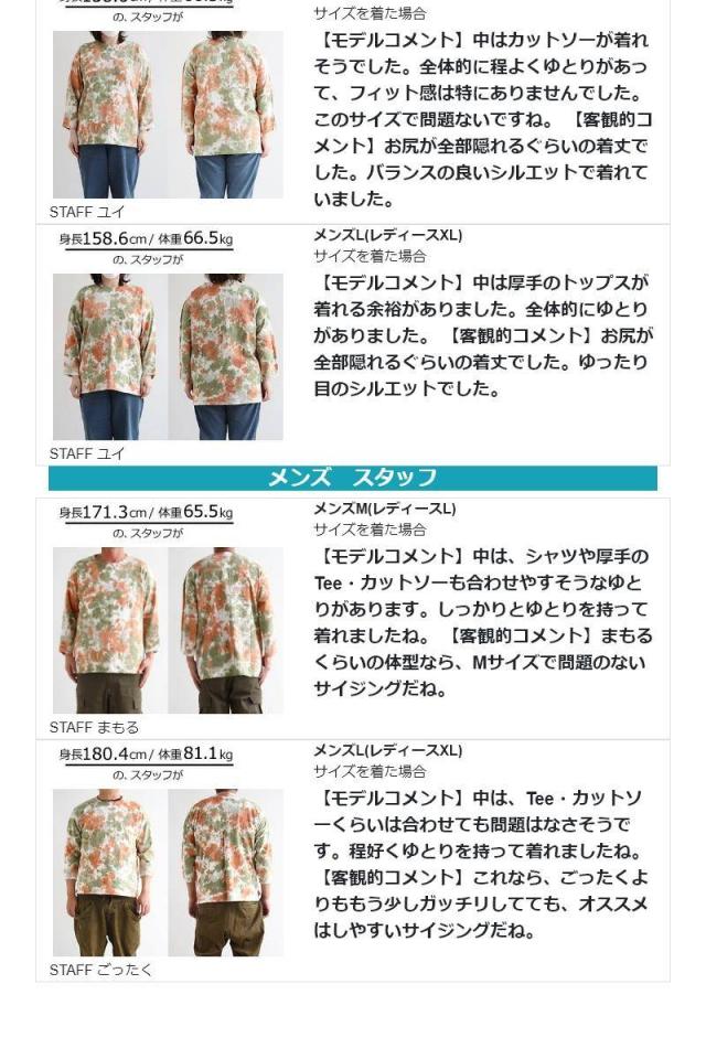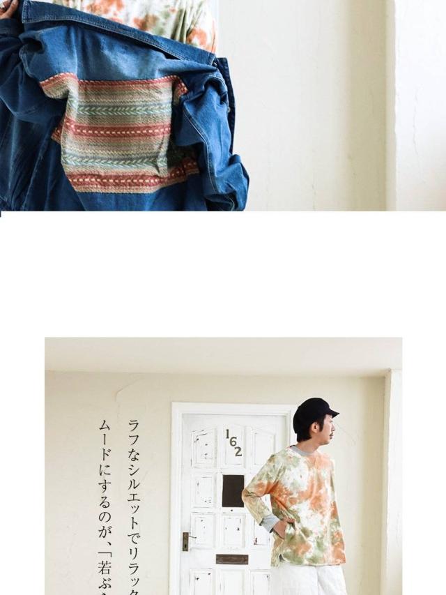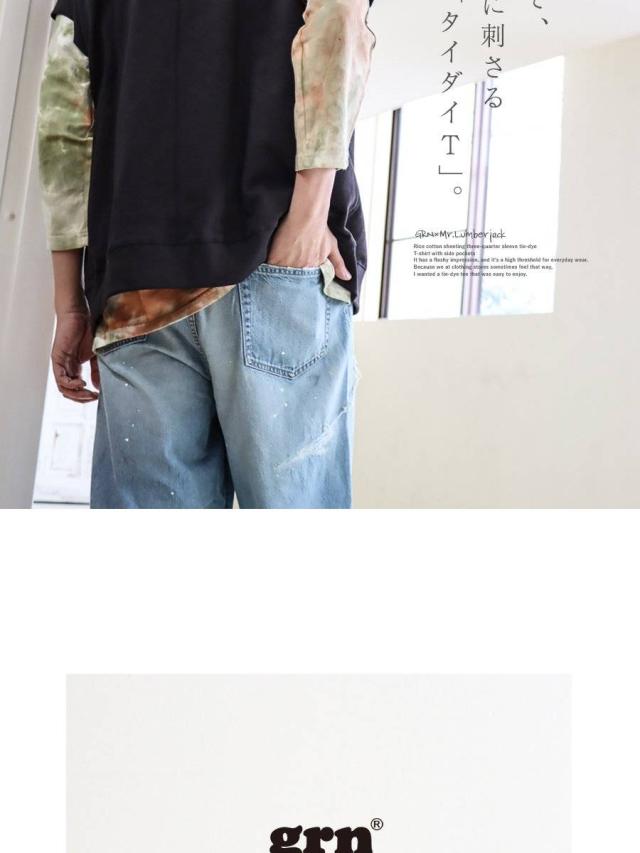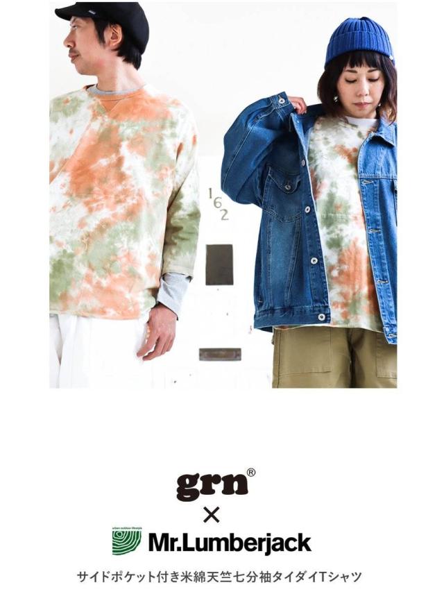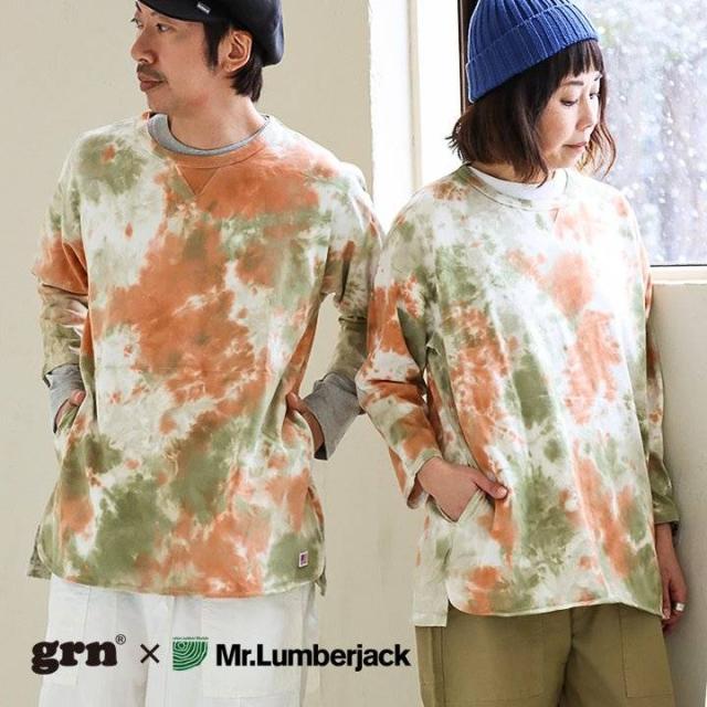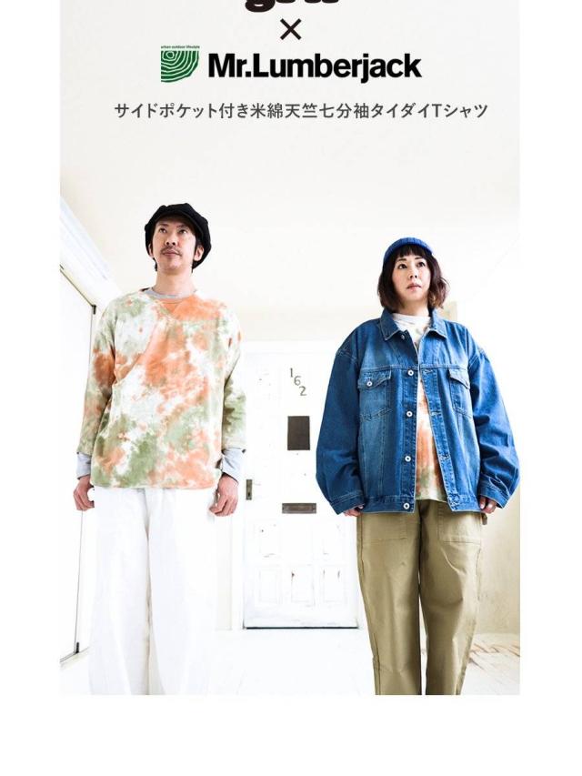【メール便50】 七分袖 tシャツ メンズ レディース カットソー タイダイ柄 トップス タイダイ ロンt 綿100% コットン USA 迷彩服 カモフラ柄 ポケット 裾 ラウンド ロング おしゃれ ゆったり プルオーバー トレーナー 風 重ね着 アウトドア PATY パティ GRN×Mr.Lumberjack