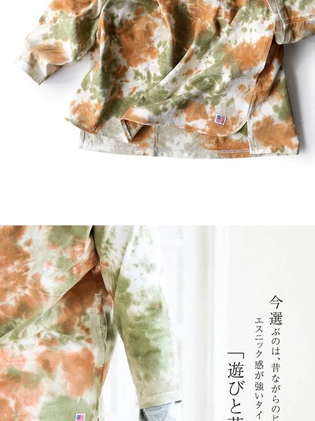 七分袖 tシャツ メンズ レディース 春 春服 カットソー タイダイ柄 トップス タイダイ ロンt 綿100% コットン USA 迷彩服 カモフラ柄 ポケット 裾 ラウンド ロング おしゃれ ゆったり プルオーバー トレーナー 風 重ね着 アウトドア PATY パティ GRN Mr.Lumberjack