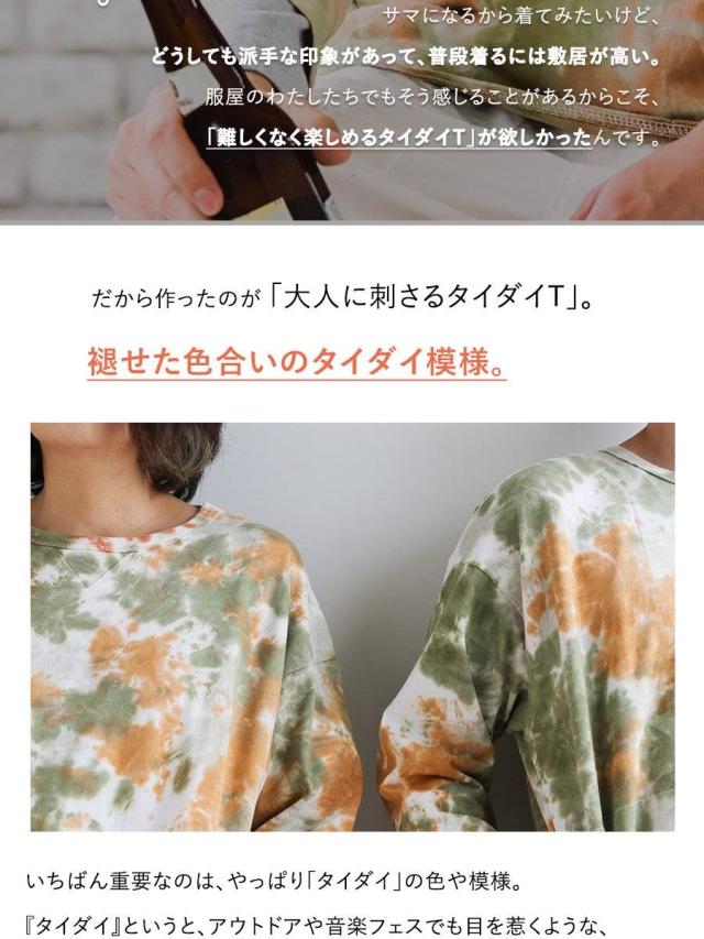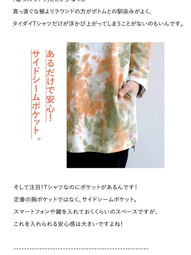 七分袖 tシャツ メンズ レディース カットソー タイダイ柄 トップス タイダイ ロンt 綿100% コットン USA 迷彩服 カモフラ柄 ポケット 裾 ラウンド ロング おしゃれ ゆったり プルオーバー トレーナー 風 重ね着 アウトドア PATY パティおうち時間 在宅 Stay Home