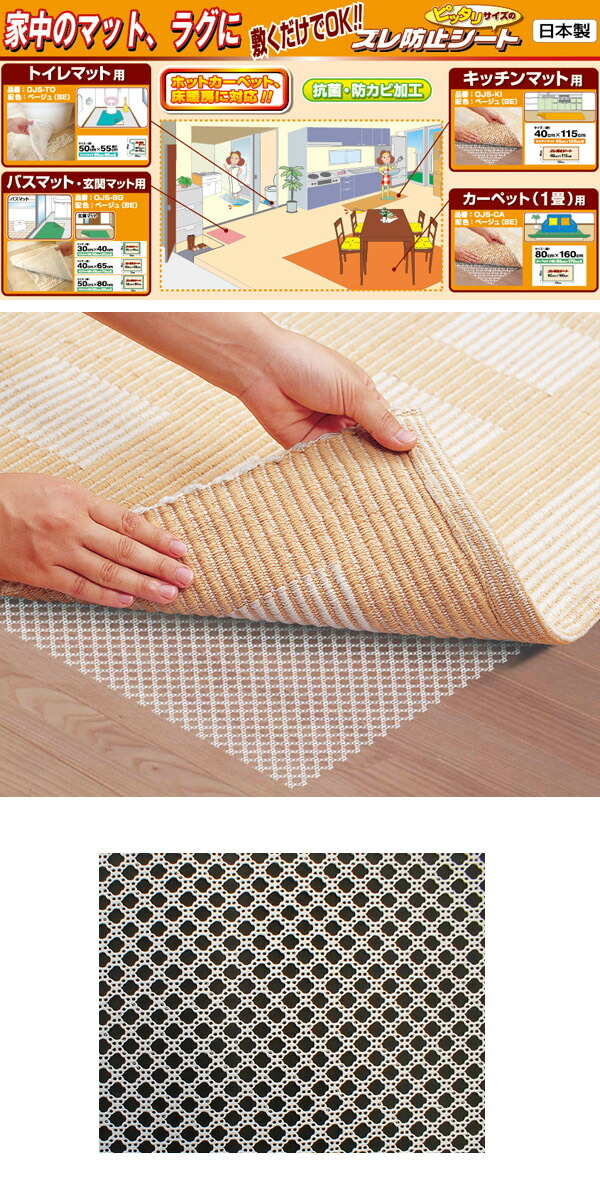 【メール便対応】明和グラビア ズレ防止 OJS-CA(カーペット用) 80cm×160cm BE 床暖房・ホットカーペットOK 抗菌・防カビ配合
