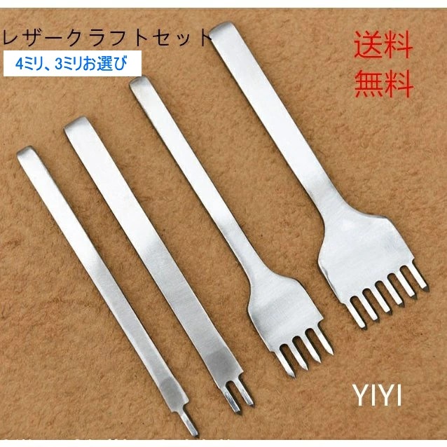 【3ミリ 4ミリ お選び】レザークラフト 道具 工具 菱目打ち DIY工具 4本 セット