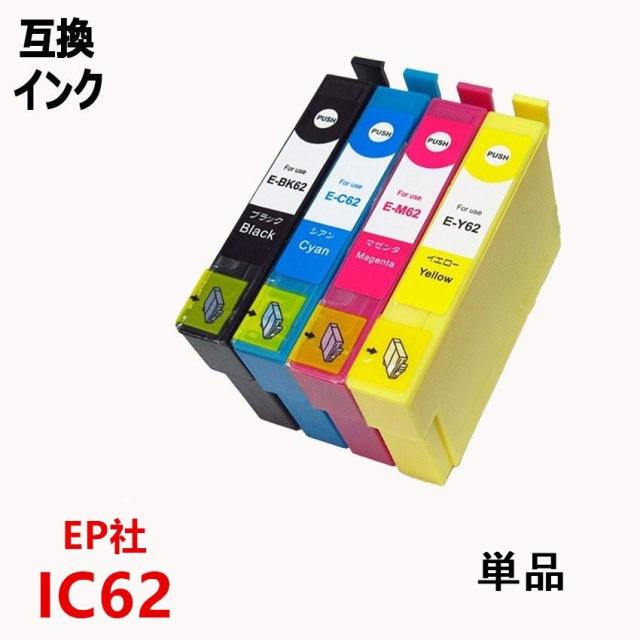 単品1色選択 互換インクカートリッジ エプソンプリンター IC62 62系インク ICチップ付 残量表示機能付 ICBK62 ICC62 ICM62 ICY62