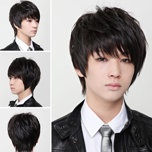 ウィッグ ショート メンズ 自然 男装 コスプレ ハロウィン(ブラック)