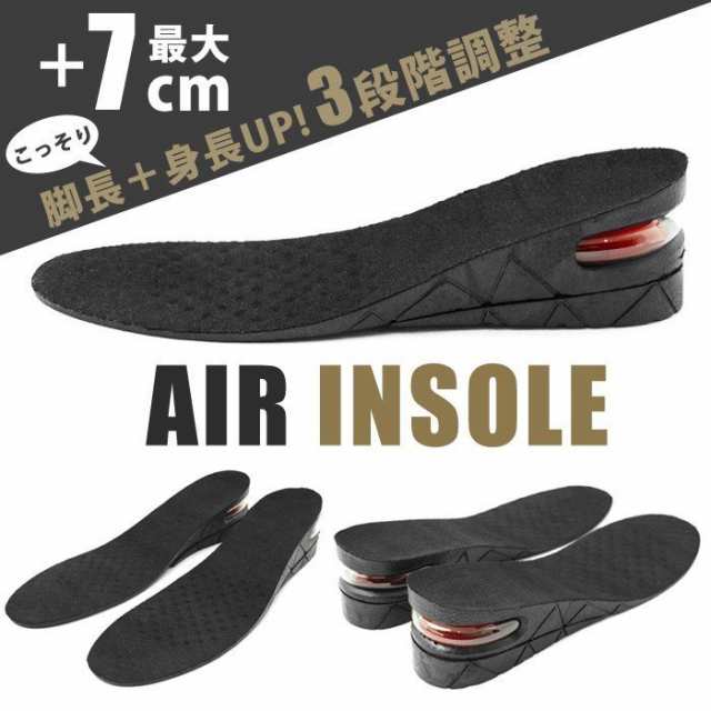 【高さ調節可能】シークレット インソール エアー クッション付き 中敷き 身長 アップ3段階 シューズ ブーツ インヒール ブラック