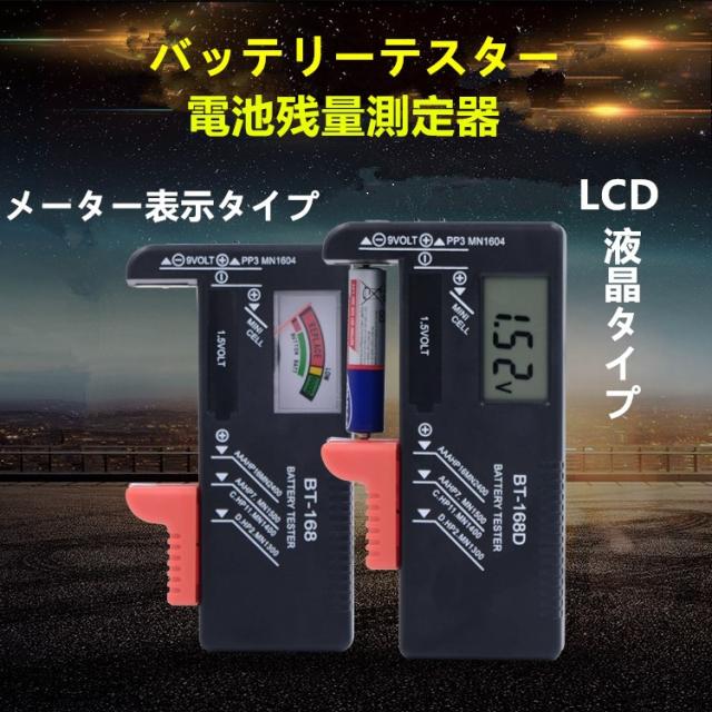 バッテリーテスター 電池チェッカー 電池テスター バッテリーチェッカー 単三 など 乾電池 リチウム ボタン電池 ニッケル水素 充電池 デジタル式 メーター式 2タイプ 1.5V/9V対応 起動 電池不要 電源不要