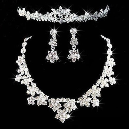 ウェディング ティアラ イヤリング/ピアス ネックレス 3点セット 髪飾り カチューシャ アクセサリー 結婚式 披露宴 ブライダル ラインストーン キュービック ジルコニア