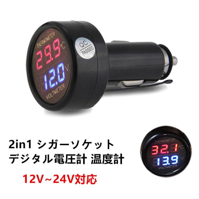 便利グッズ 車 2in1 シガーライター シガーソケット LED デジタル 電圧計 温度計 12V〜24V車対応