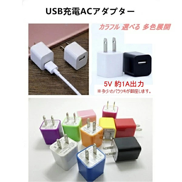 【日本PSE認証取得】ACアダプター 充電器 小型 軽量 家庭用コンセント 1口 携帯 iPhone スマートフォン スマホ モバイルバッテリー 単品 赤 桃 紅 青 黄 紫 黒 白