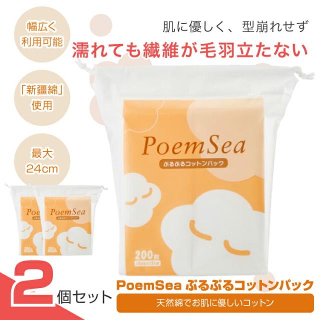 【 2個 セット 】 コットン PoemSeaぷるぷるコットンパック 正規品 無地 化粧 化粧落とし クレンジング パック 天然棉 で お肌に優しいコットン 蛍光増白剤不使用 安心 ぷるぷる コットン パック