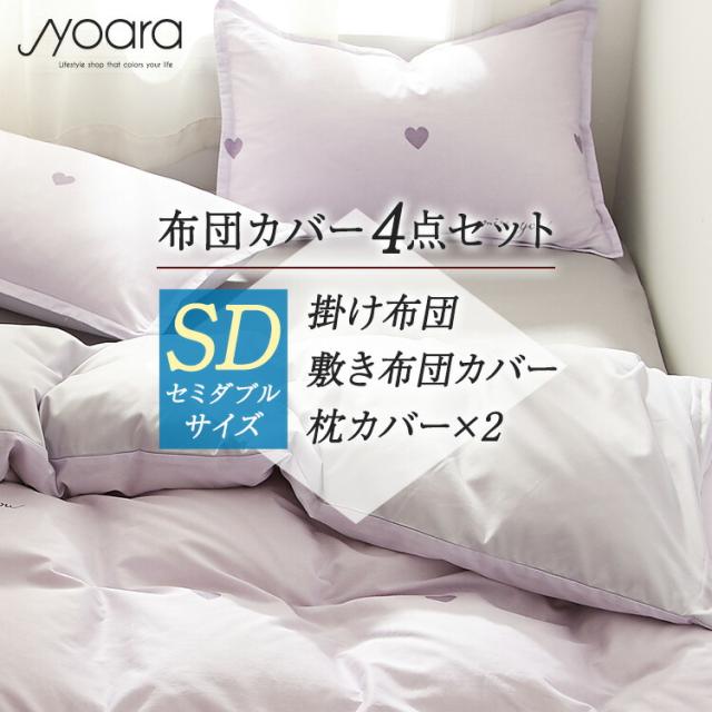 布団カバー ファニーハート セミダブル 布団カバーセット 掛け布団カバー かわいい 布団 カバー セット ボックスシーツ 綿100% 綿 100 ベッドカバー おしゃれ 海外 シーツ カバー4点セット 布団カバー