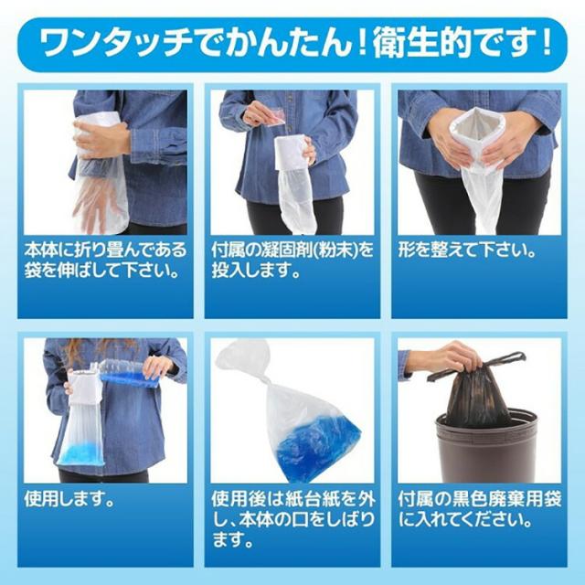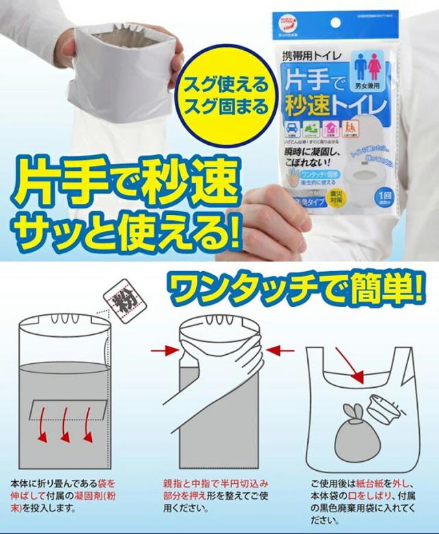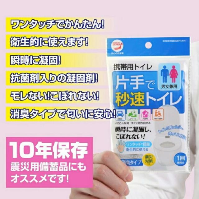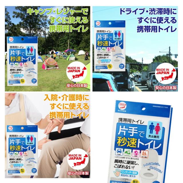 携帯トイレ 簡易トイレ 非常用トイレ 災害用トイレ 女性用 男性用 車 登山 片手で秒速トイレ 男女兼用 大便 小便 日本製 抗菌 消臭 防災 防災セット 防災グッズ 避難 災害 コンパクト 便利 凝固剤 長期保存