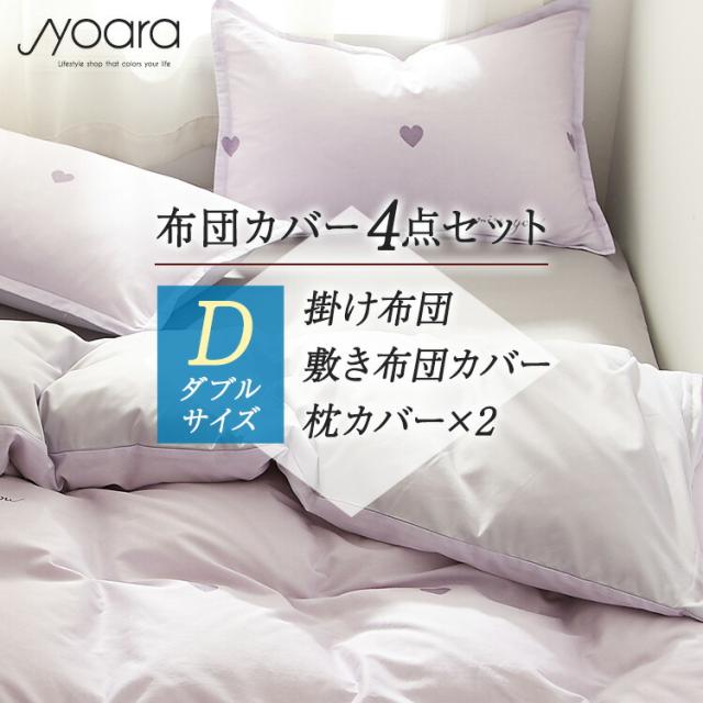 布団カバー ファニーハート ダブル 布団カバーセット 掛け布団カバー かわいい 布団 カバー セット ボックスシーツ 綿100% 綿 100 ベッドカバー おしゃれ 海外 シーツ カバー4点セット 布団カバー