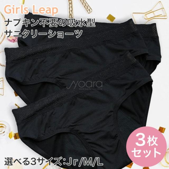 サニタリー ショーツ Gilrs Leap ガールズリープ 3枚セット 正規品 ベーシックショーツ ブラック レディースショーツ 防水 吸水型 ナプキン不要 生理用パンツ タンポン不要 抗菌加工 吸水速乾