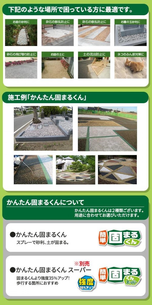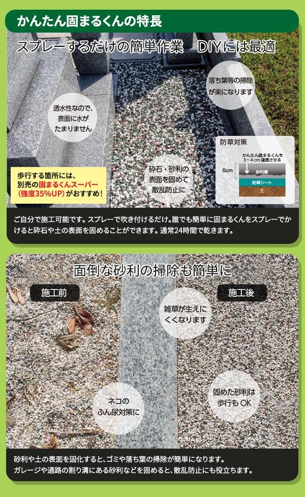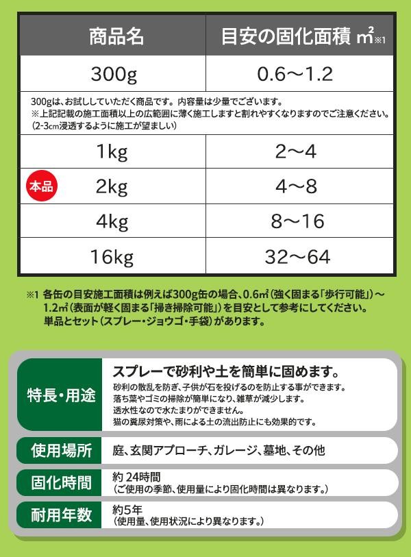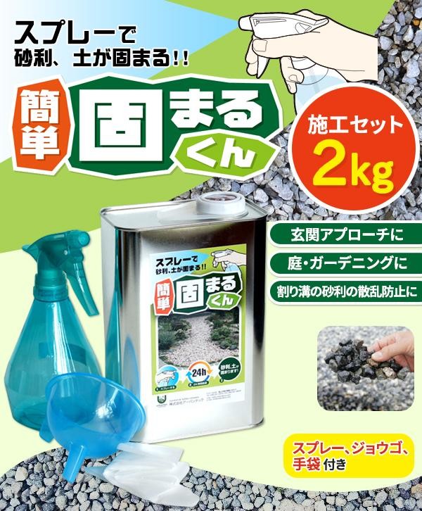 スプレーで砂利・土が固まる! 簡単 固まるくん 施工セット 2kg 砂利の散乱防止・雑草対策・墓地