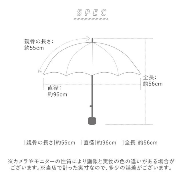| サイズ | [親骨の長さ]約55cm/[直径]約96cm/[全長]約56cm [収納時の長さ]約24cm [収納時の幅]約6cm ※サイズは当店計測の実寸サイズです。実際の商品ならびにメーカー表記サイズとは多少の誤差が生じる場合がございます。あらかじめご了承ください。 |