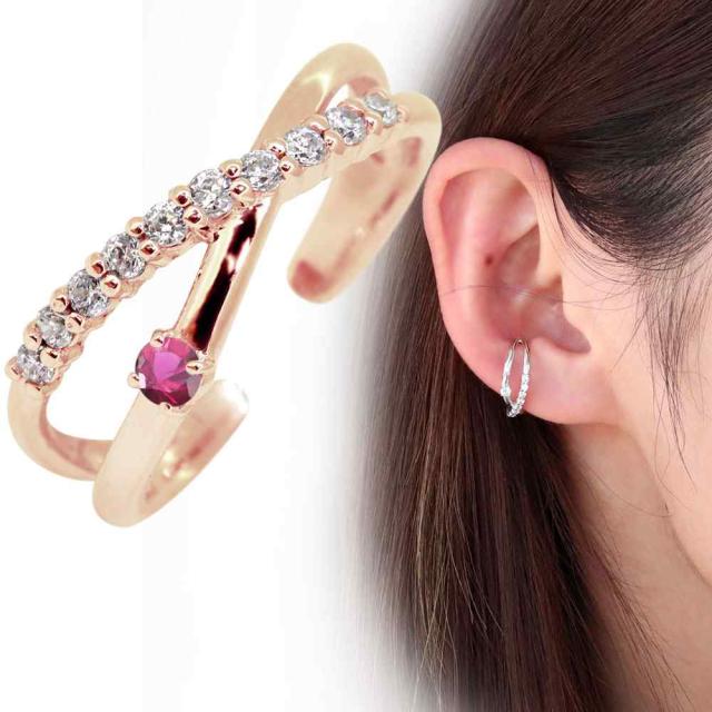 イヤーカフ イヤカフ 片耳用 レディース 10金 ゴールド ピンクゴールド ルビー