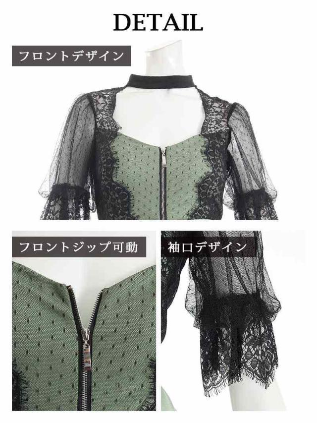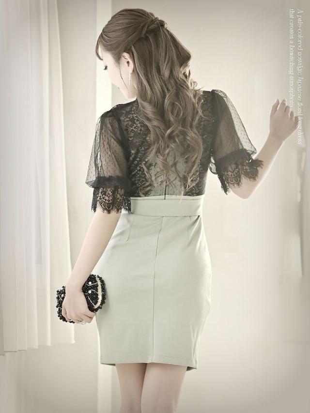☆フロッキーシアーレースが華やかなふんわりパフ袖のミニドレス。
