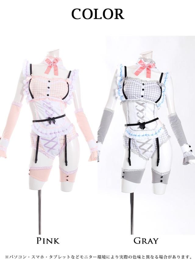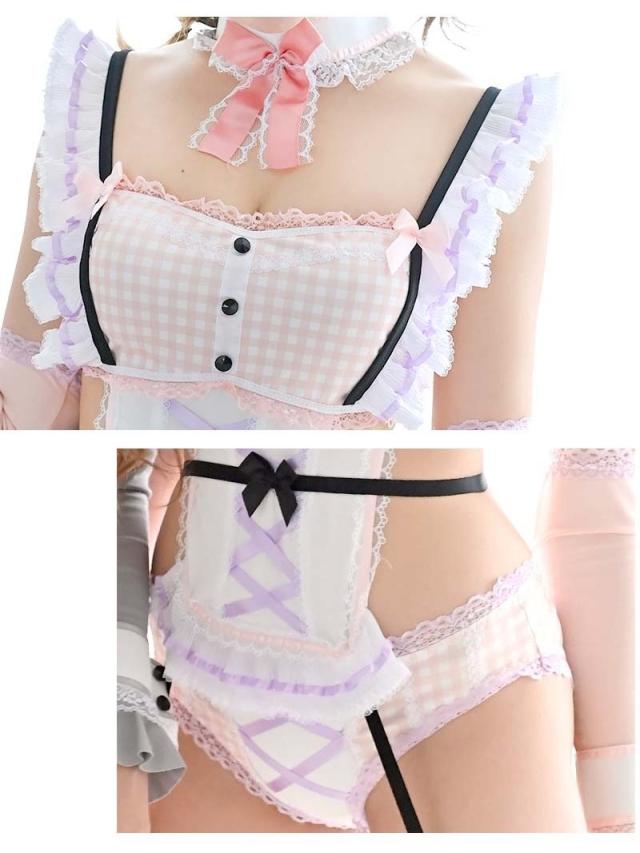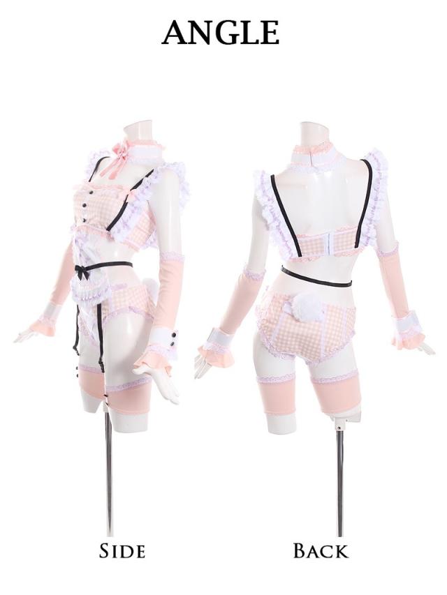 ☆淡い色パステルカラーのギンガムチェックとフリルをふんだんに使ったデザインが甘可愛いウサギちゃんアニマルコスプレ衣装♪