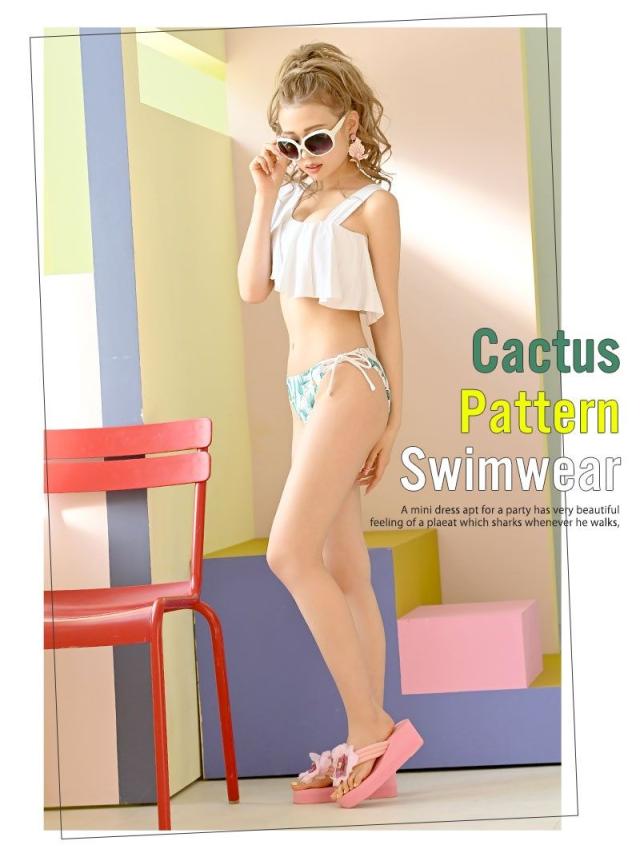 ☆無地×柄がおしゃれに映え、リゾートっぽさを醸し出すセットアップビキニはビーチで視線をくぎつけ間違いなしな2点セットビキニ♪