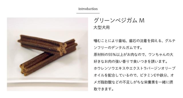 グリーンベジガムは噛むことにより歯垢、歯石の沈着を抑える、グルテンフリーのデンタルガムです。