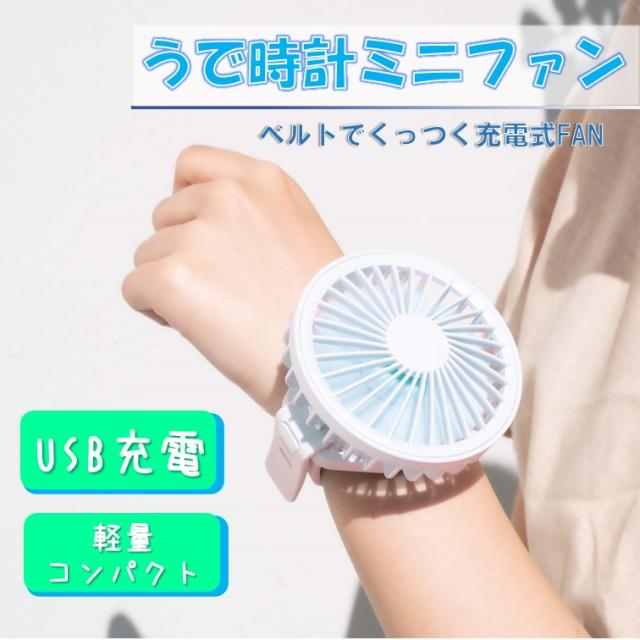 腕時計型ファン 小型 扇風機 卓上 USB 充電 キャンプ コードレス 吊り下げ 持ち運び デスク TI-21AW