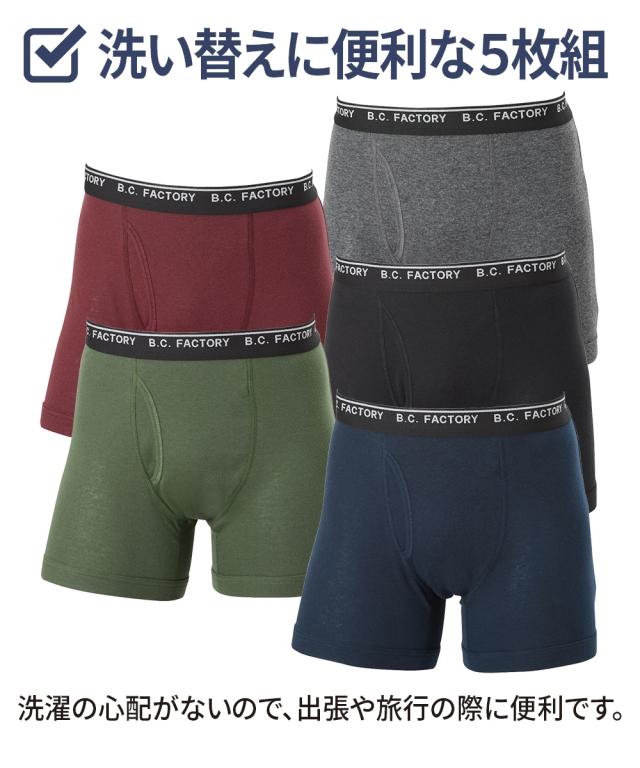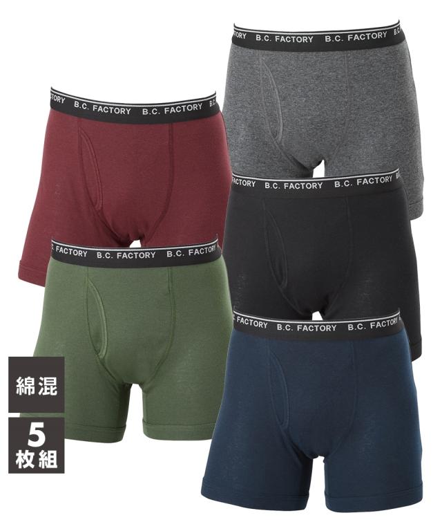 ボクサーパンツ メンズ 綿混 フライス 前開き 5枚組 M/L/LL