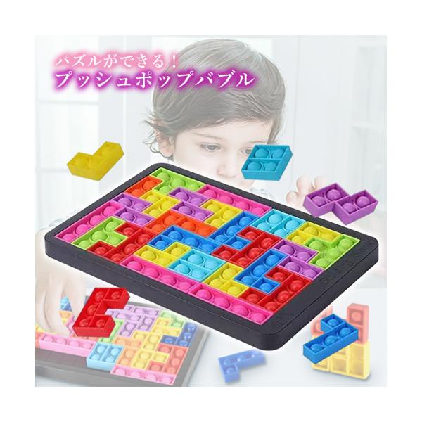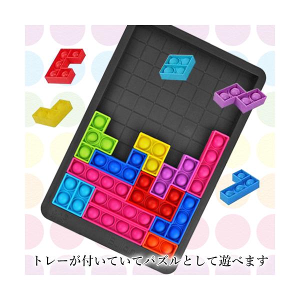 - ずっと欲しがっていたプッシュポップ、すぐ飽きそうで購入に至りませんでしたが、テトリスになっているので、これなら長く楽しめると思い購入しました。届いてすぐ熱心にはめていますが、今のところ全く完成しそうにありません笑 が、とても楽しそうで、本当に買ってよかったです。良心的なお値段で販売してくださり、ありがとうございました。