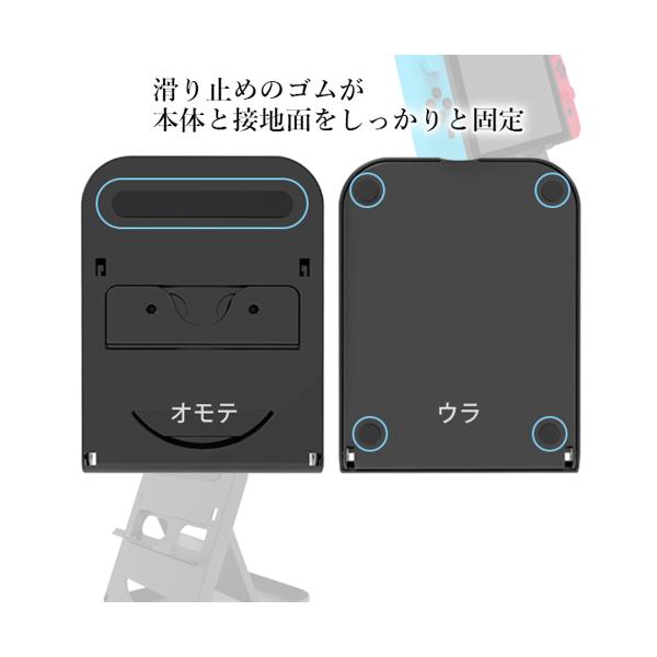 ・Switchを置く場所とスタンドの底面にゴムがついていて、しっかりと固定します。