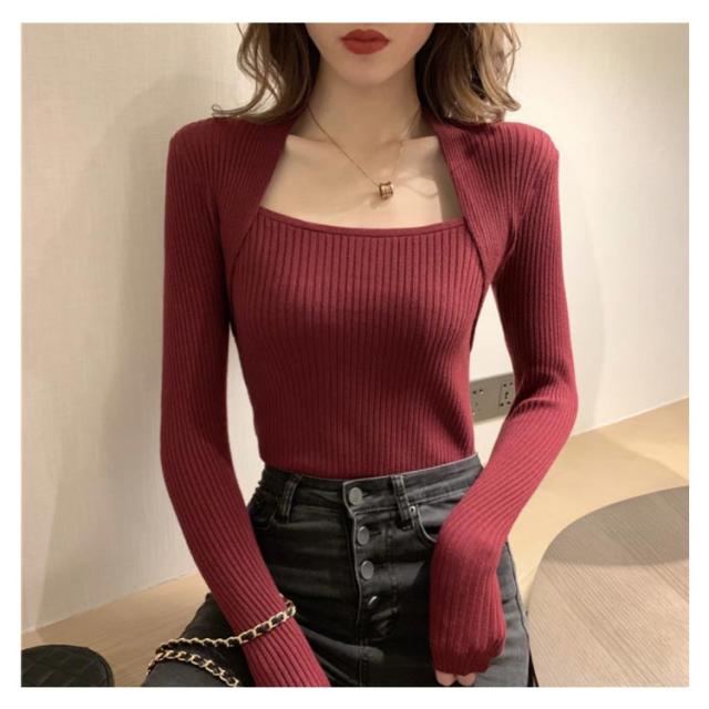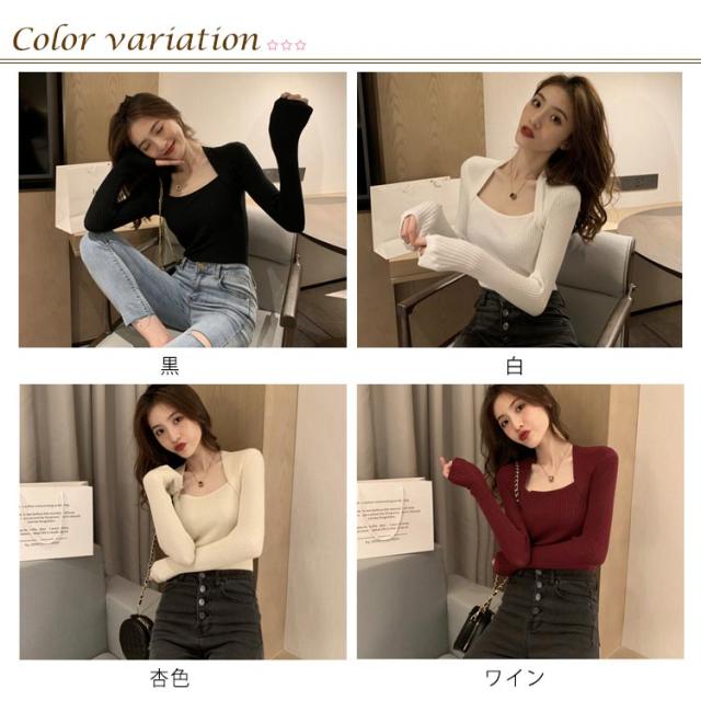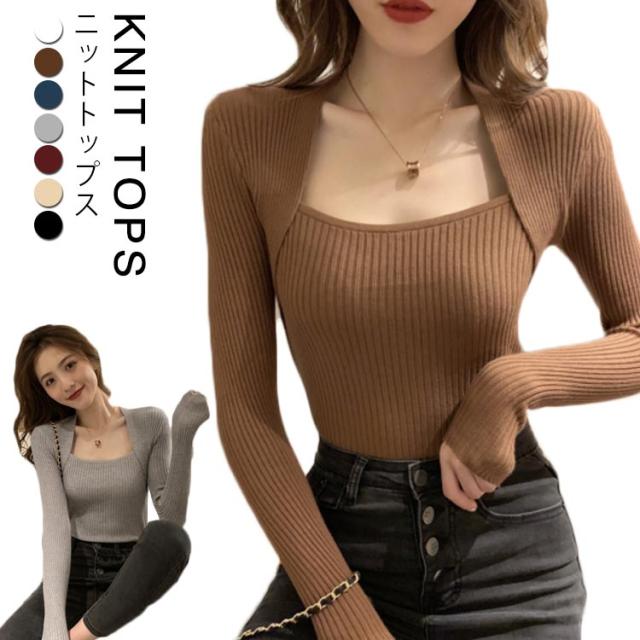 スクエアネック ニット トップス レディース セクシー 鎖骨見せ デコルテ ニット トップス ニット プルオーバー タイト ニットトップス プルオーバー リブニット 長袖 ニット セーター カットソー 通勤 オフィス 長袖 トップス 送料無料