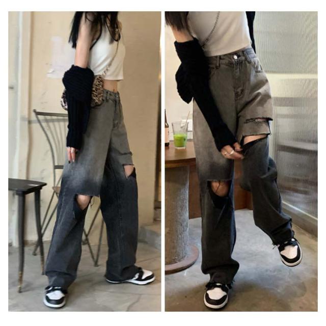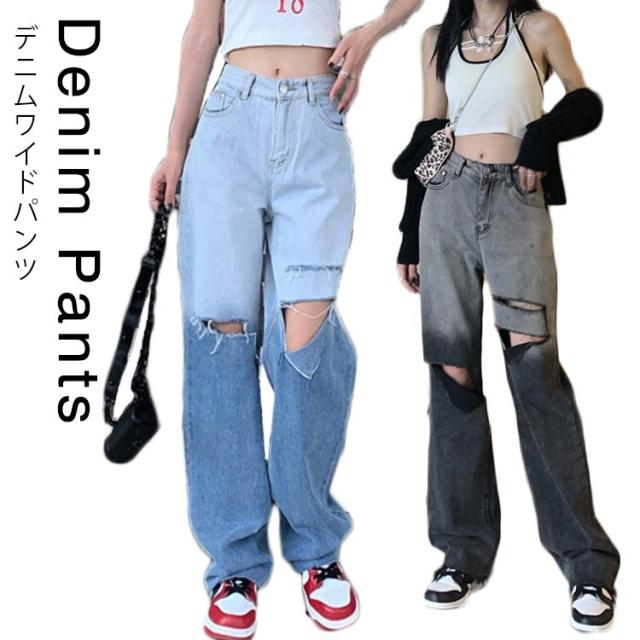 ダメージ加工 デニムパンツ デニム ワイドパンツ デニム ロングパンツ デニムワイドパンツ ハイウェスト デニム ストレートパンツ デニム パンツ ジーンズ レディース デニム ガウチョパンツ ウオッシュ デニムジーンズ ウオッシュ ジーパン 送料無料