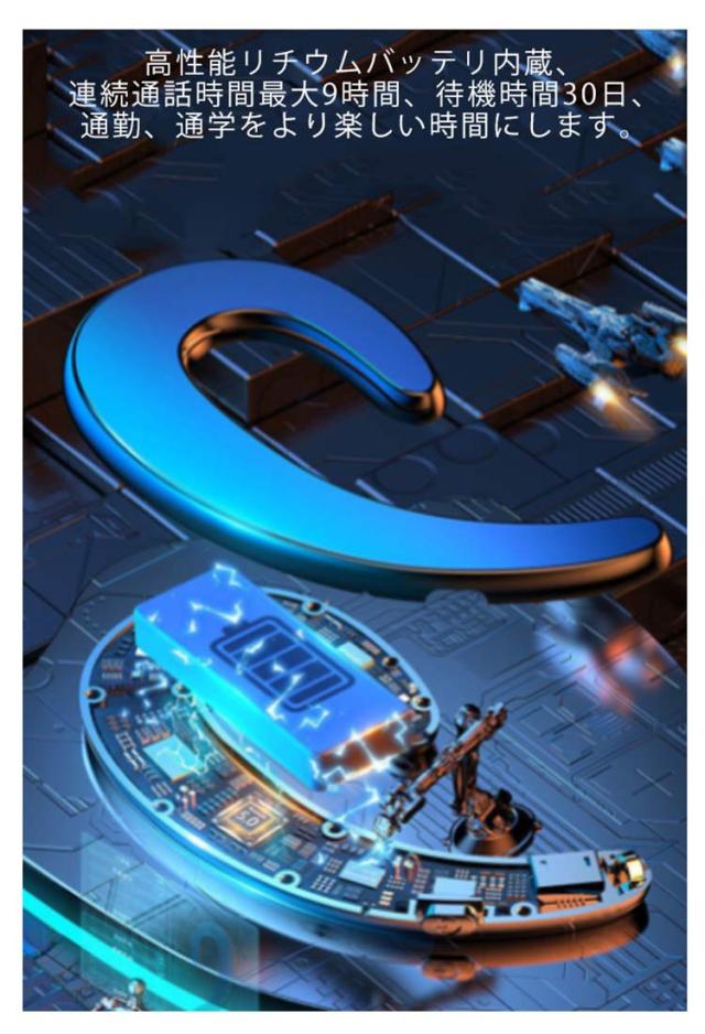 | 商品は耳を塞がずブルートゥースイヤホンです、片耳イヤホンです。 高機能を備えたワイヤレスイヤホン、自動ノイズリダクション技術を使用して音質と通話品質を向上させ。 3gだけ超軽量のデザイン、OPEN式ですので耳道に負担かけない。 人間工学設計で耳の自然な形状非常に合わせやすいし、落ちにくいし、オープンイヤーのワイヤレス イヤホンなので、耳を塞がずに音楽を聴きながら、外から入ってくる環境音も普通に聞く事が可能ですから、安全を保証します。 高性能リチウムバッテリ内蔵、連続通話時間最大9時間、待機時間30日、通勤、通学をより楽しい時間にします。 ランニングやジョギングなど、スポーツシーンで使用するのに最適な防水機能付きのワイヤレスイヤホン。 快適な装着感と一体感を実現、耳への負担を最小にして、長時間付けても重さを感じられない、移動中も落とす心配がなく、快適に使用できます。 | |