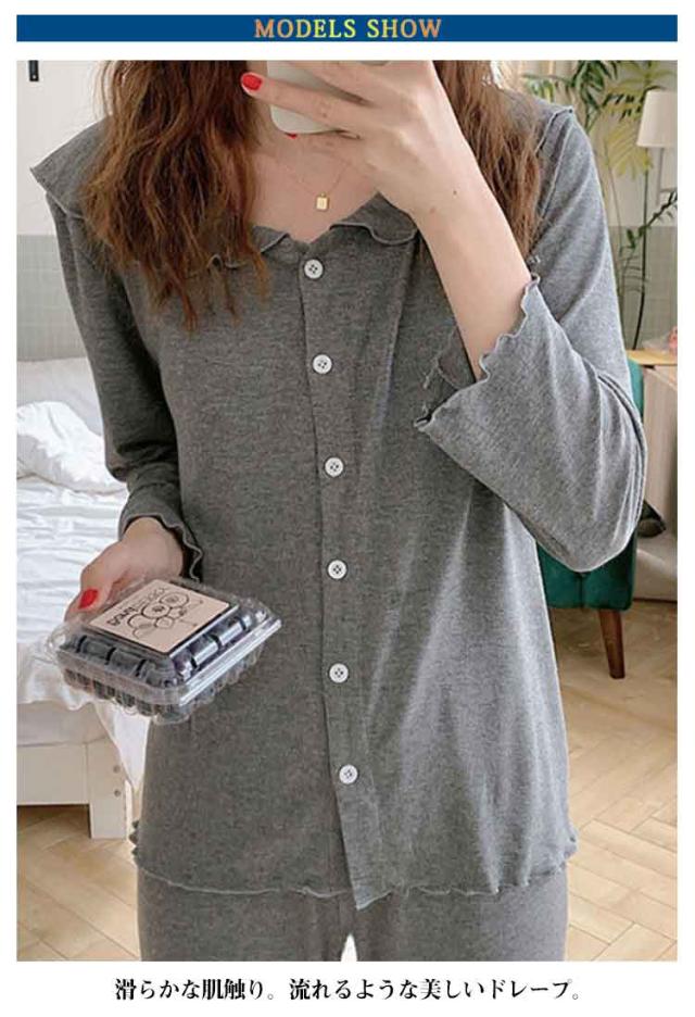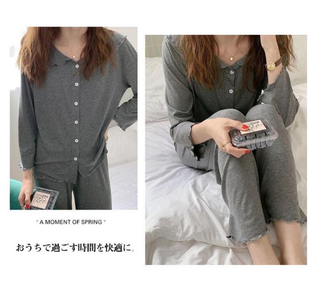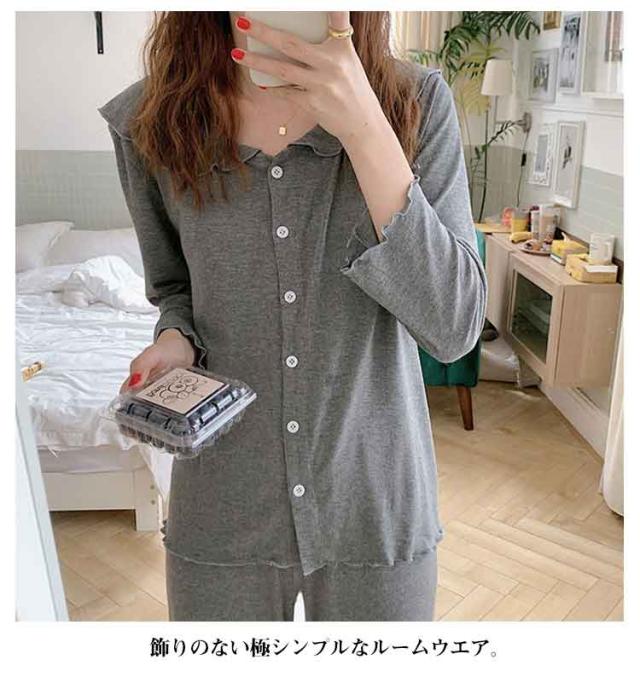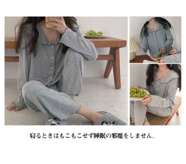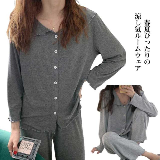 【送料無料】 ルームウエア 部屋着 上下セット パジャマ 長袖 春夏 ナイトウェア 薄め 前開き 無地 シンプル かわいい 韓国 ウエストゴム ギフト プレゼント 綿ポリエステル 長ズボン 部屋着 寝間着 前開き 上下セット