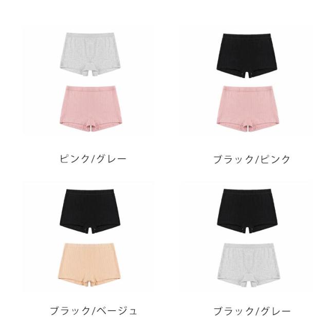 ショーツ ボクサーショーツ レディース 2枚セット 送料無料 インナー 下着 ボクサーパンツ 女性下着 シンプル 無地 綿混 単色 リブ 単品 肌着 普段使い デイリー アンダーウェア 婦人用