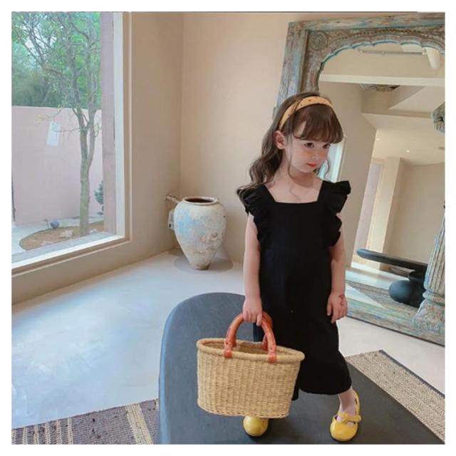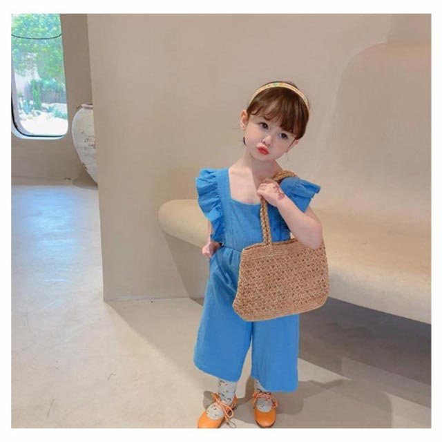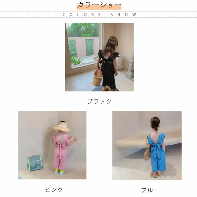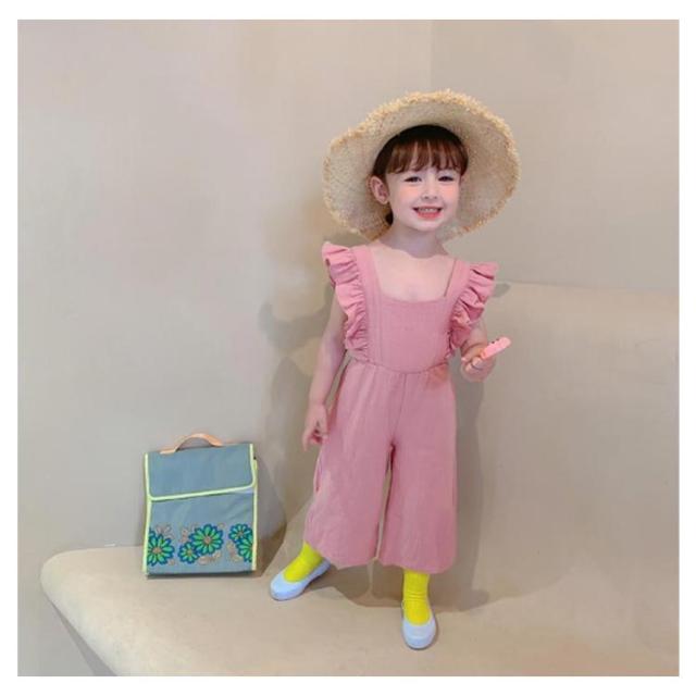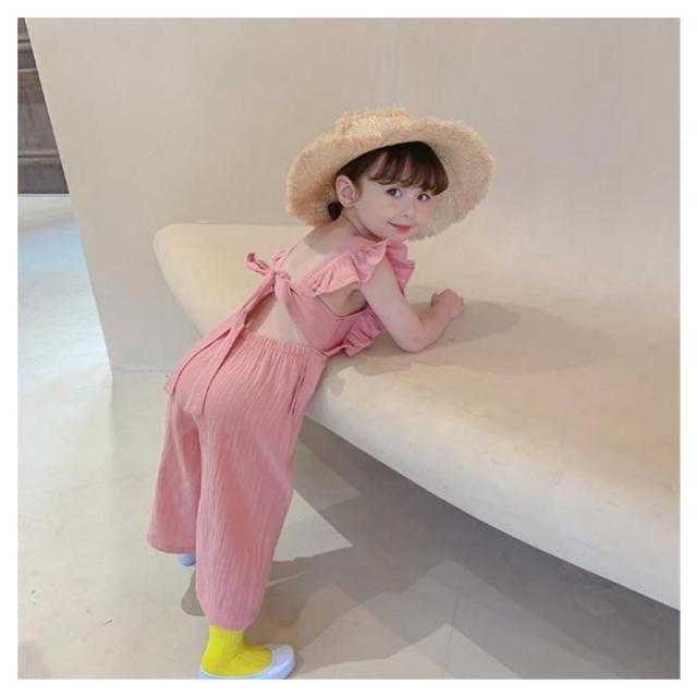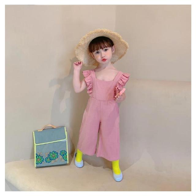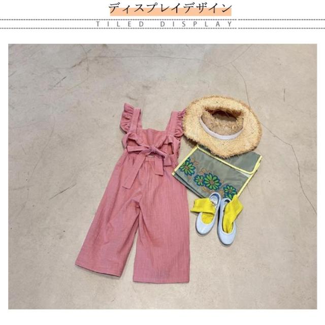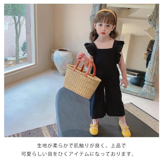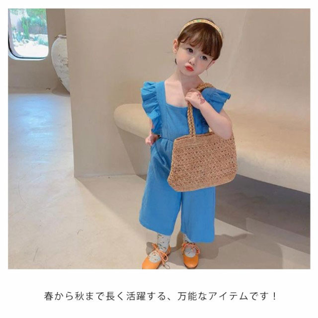 肩フリル キッズ オーバーオール サロペット ワイドパンツ イージーパンツ バギーパンツ ふわふわ 子供服 女の子 シンプル 韓国 春 夏 かわいい おしゃれ フェミニン 90 100 110 120 130 送料無料