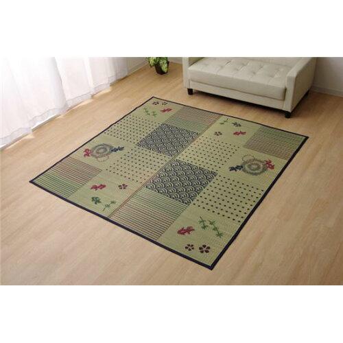 イケヒコ・コーポレーション(IKEHIKO) い草ラグ ラグ カーペット 2畳 正方形 和柄 風物詩 『DX金魚』 約176×176cm (裏:不織布)