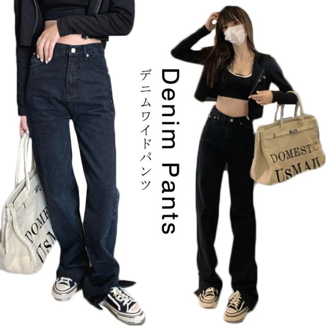 ブラック デニム パンツ デニム ストレートパンツ デニムパンツ デニム ワイドパンツ デニム ロングパンツ デニムワイドパンツ ハイウェスト ジーンズ レディース デニム ガウチョパンツ ウオッシュ デニムジーンズ ジーパン 送料無料