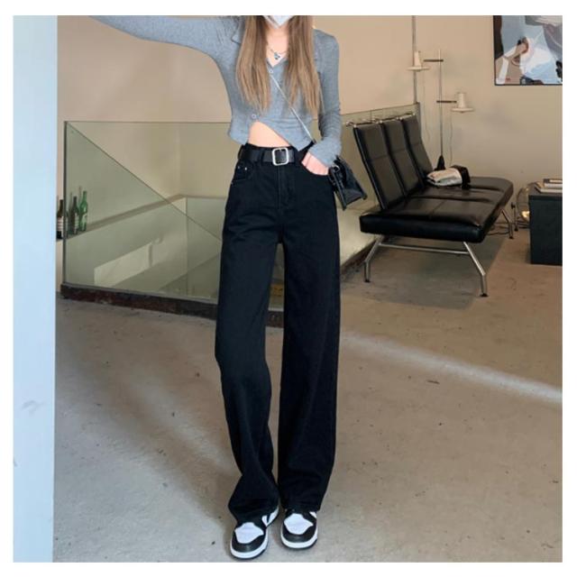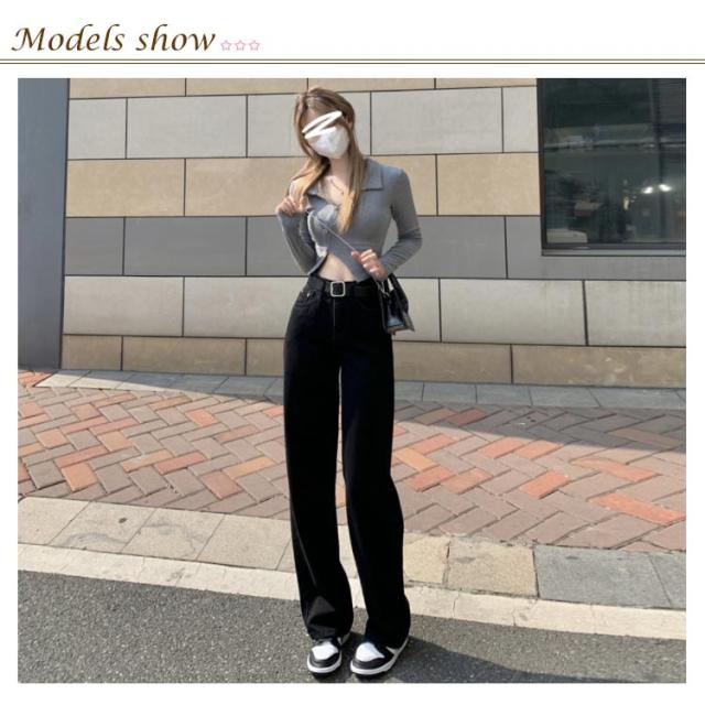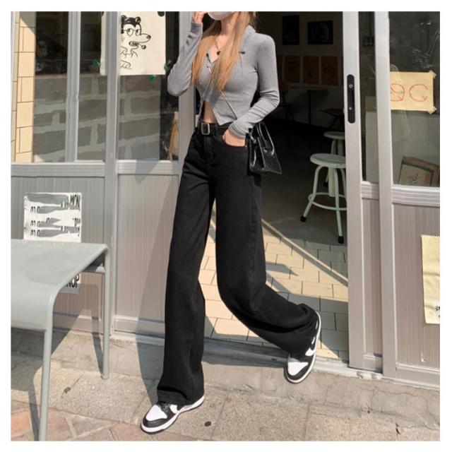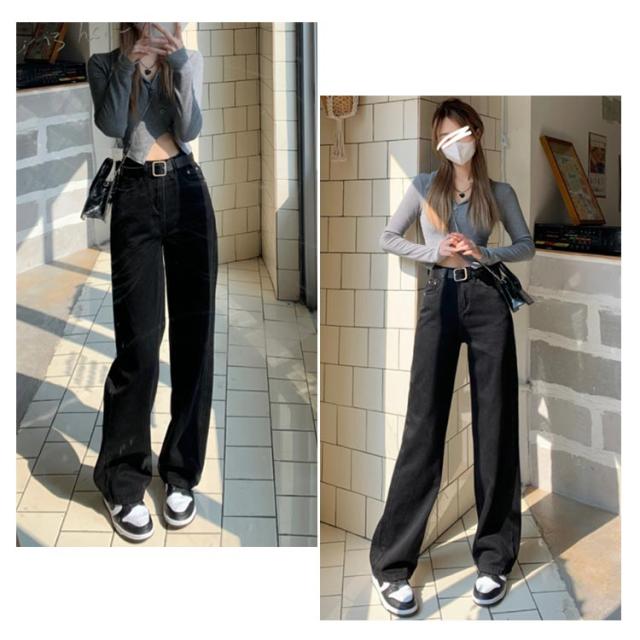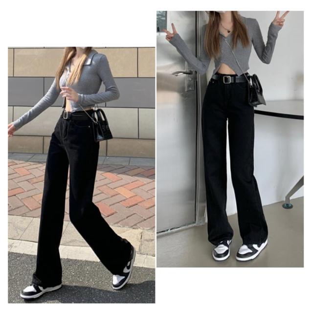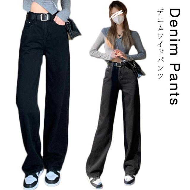 ハイウェスト (ベルトなし) ジーンズ レディース ブラック デニム パンツ デニム ストレートパンツ デニムパンツ デニム ワイドパンツ デニム ロングパンツ デニムワイドパンツ デニム ガウチョパンツ ウオッシュ デニムジーンズ ジーパン 送料無料