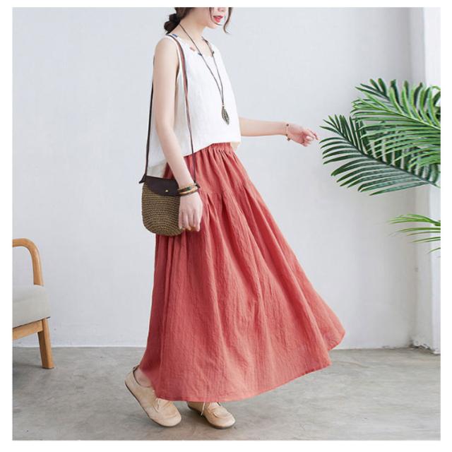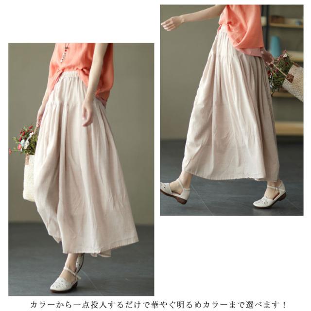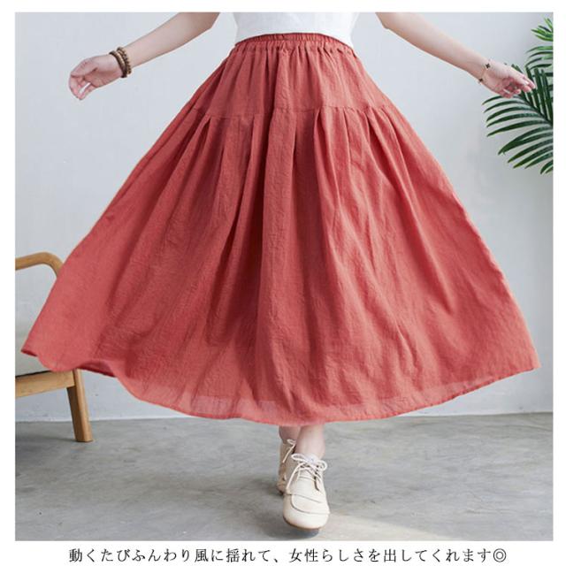 送料無料 ロングフレアスカート コットン風 リネン風 ロングスカート フレア ギャザー スカート マキシスカート マキシ スカート 体型カバー ふんわり ボトムス レディース きれいめ カジュアル ウエストゴム イーミー