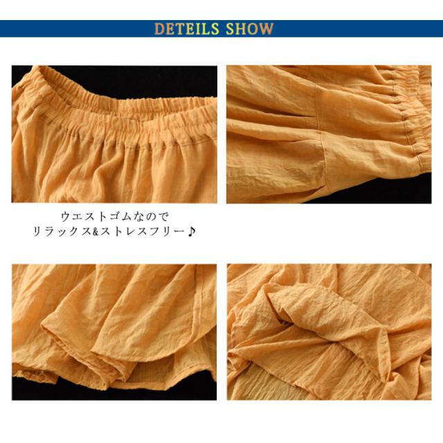 | 全6色から選べるフレアスカート! ナチュラル感のあるコットンリネン素材をふんだんに使用したふんわりエアリーなシルエット。 ウエストゴムなのでリラックス&ストレスフリー♪ 動くたびふんわり風に揺れて、女性らしさを出してくれます◎ カラーから一点投入するだけで華やぐ明るめカラーまで選べます! | |