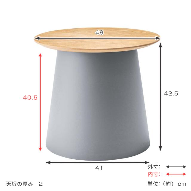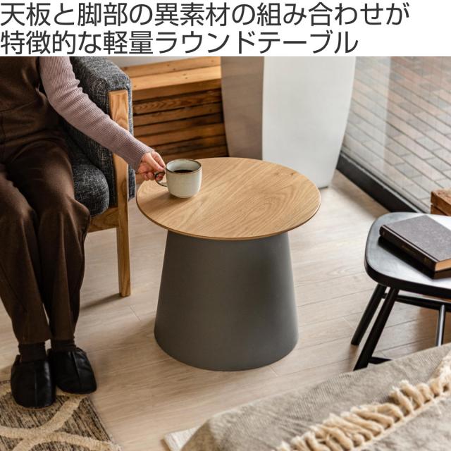 ラウンドテーブル 幅49cm 円形 木製 ( サイドテーブル ナイトテーブル センターテーブル リビングテーブル テーブル おしゃれ 丸 北欧 モダン シンプル 天板 天然木 プラスチック ポリプロピレン 異素材 軽量 白 グレー )