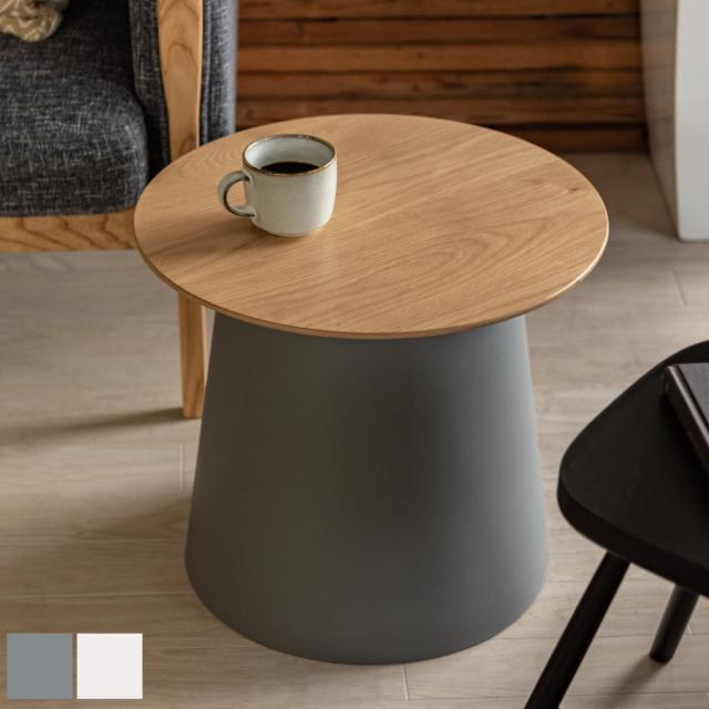 ラウンドテーブル 幅49cm 円形 木製 ( サイドテーブル ナイトテーブル センターテーブル リビングテーブル テーブル おしゃれ 丸 北欧 モダン シンプル 天板 天然木 プラスチック ポリプロピレン 異素材 軽量 白 グレー )