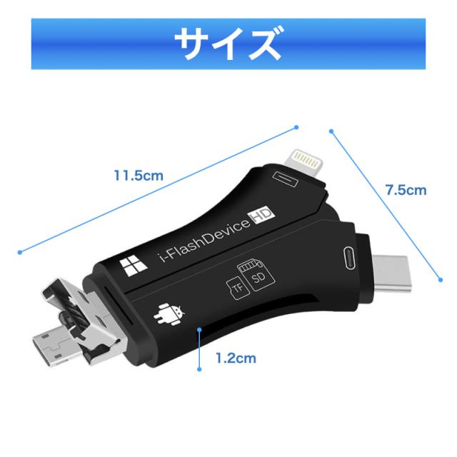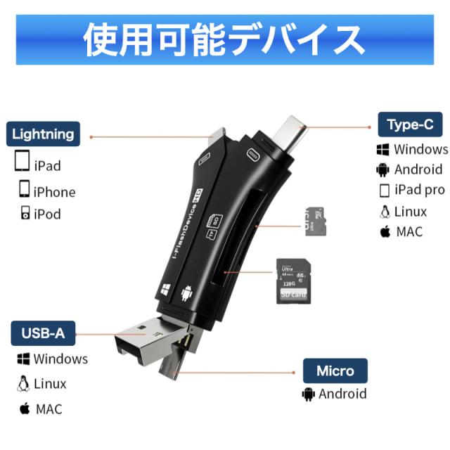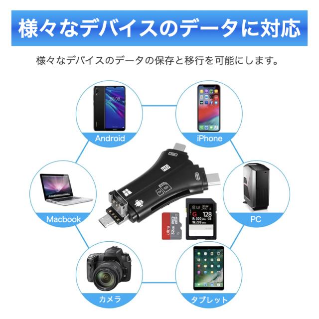 日本語取扱説明書付き スマホ SD カードリーダー SDカードカメラリーダー 5in1 USB メモリ iPhone Android iPad Mac TypeC micro SD 写真 高速 バックアップ データ ノートPC アンドロイド TFカード データ転送 画像