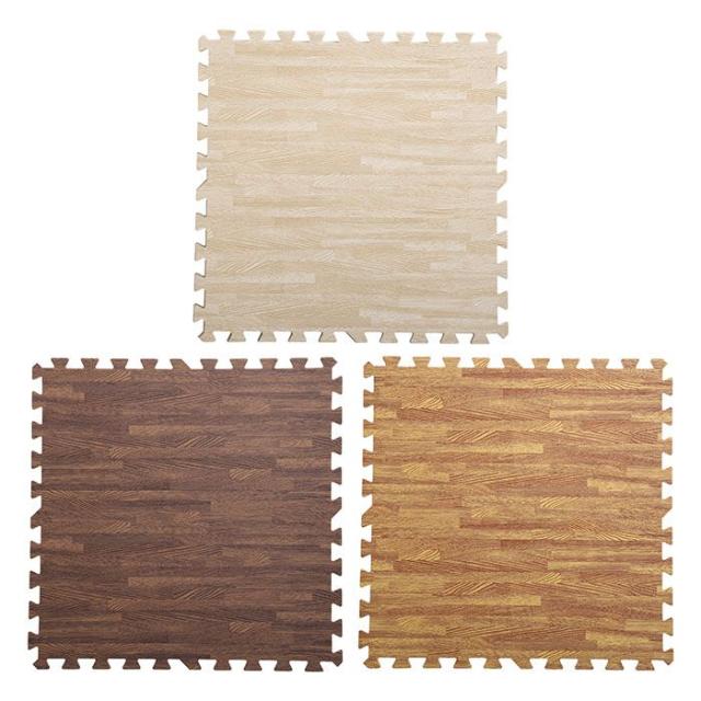 オールシーズン快適な木目調ジョイントマット64枚タイプ。カラーバリエーションは、ホワイト(JAN:4535306173784/品番:MMT-64--WH)、ブラウン(JAN:4535306173760/品番:MMT-64--BR)、ナチュラル(JAN:4535306173777/品番:MMT-64--NA)です。衝撃を吸収するEVA樹脂だから防音効果や保温効果があります!安心して使える低ホルムアルデヒド商品。水洗いできるから、汚れても安心♪レイアウトしやすいサイドパーツ付き。