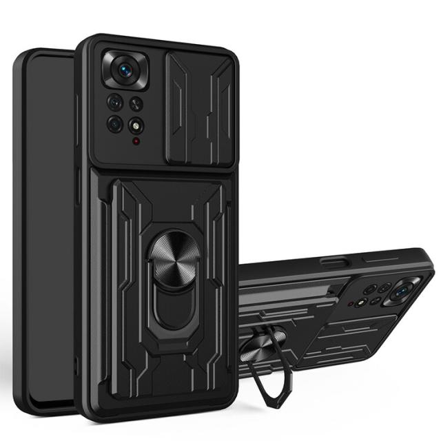 Xiaomi Redmi Note 11 ケース 耐衝撃 カバー スライド式カメラレンズカバー付き レンズ保護 スタンド機能 一体型リング付き カード収納 2重構造 シャオミ リドミーノート11 アンドロイド おすすめ おしゃれ スマートフォン/スマフォ/スマホケース/カバー