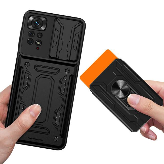 Xiaomi Redmi Note 11 ケース 耐衝撃 カバー スライド式カメラレンズカバー付き レンズ保護 スタンド機能 一体型リング付き カード収納 2重構造 小米 シャオミ レッドミー ノート11 アンドロイド おすすめ おしゃれ スマートフォン/スマホケース/カバー レドミー
