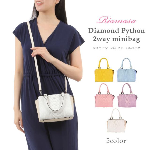 Riamasa パイソン ハンドバッグ 本革 レディース 女性 2way ショルダーバッグ 小さめ 軽い ヘビ革 ミニショルダー ピンク パープル 可愛い おしゃれ パステル ミニ カジュアル 蛇革バッグ リアマッサ ブランド 大人 人気 金運 風水 母の日 ギフト 送料無料