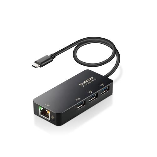 エレコム(ELECOM) EDC-GUC3H2-B ブラック LANアダプター 有線 タイプC Giga USBハブ付
