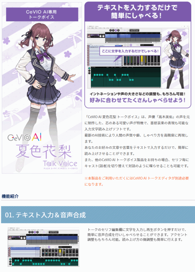 | CeVIO AI 夏色花梨 トークボイス スペック情報 | |