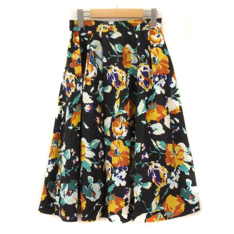 【中古】ビス ViS アートフラワータックミディ丈スカート M 黒 ブラック レディース